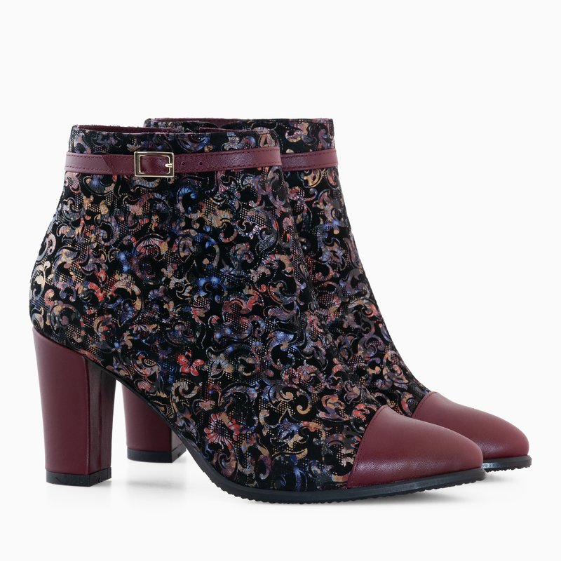 Culoare: imprimeu multicolor in combinatie cu bordo piele naturala;