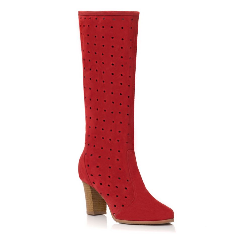 Cizme cu toc si piele perforata;