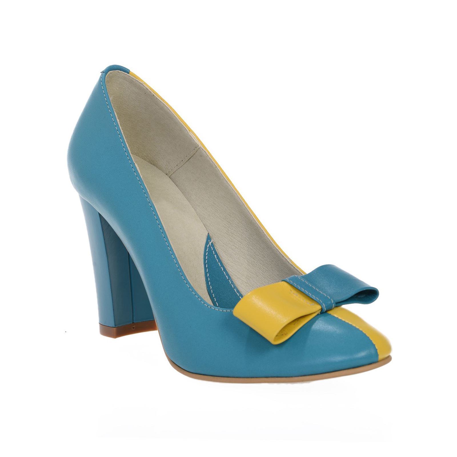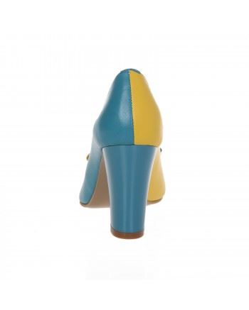 Culoare: albastru si galben piele naturala;