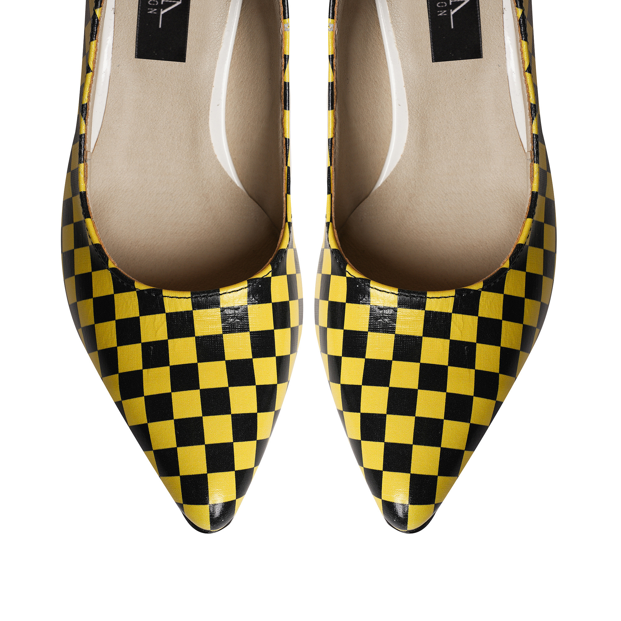 Modelul Taxi Check este definiția modernă a stilului urban îndrăzneț. Realizați manual din piele naturală de cea mai înaltă calitate, acești pantofi stiletto impresionează prin imprimeul grafic cu carouri galben-negre, inspirat de vibrația metropolitană.